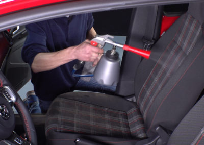 Die Tornador® CLASSIC Z-010RS ist eine druckluftbetriebene Saugbecher-Pistole, die sowohl Luft als auch Reinigungsflüssigkeit extrem fein zerstäubt und unter hohem Druck rotierend verwirbelt. Einem geothermischen Tornado ähnlich, entsteht eine Art Rotationsfräse, die mit großer Kraft Schmutzpartikel aus der Oberfläche löst. Ideal für die „2-Minuten-Aufbereitung“ während des Kundenservices: Türablagefach, Armaturenbrett und Schaltmanschette: Ihr Kunde wird staunen!